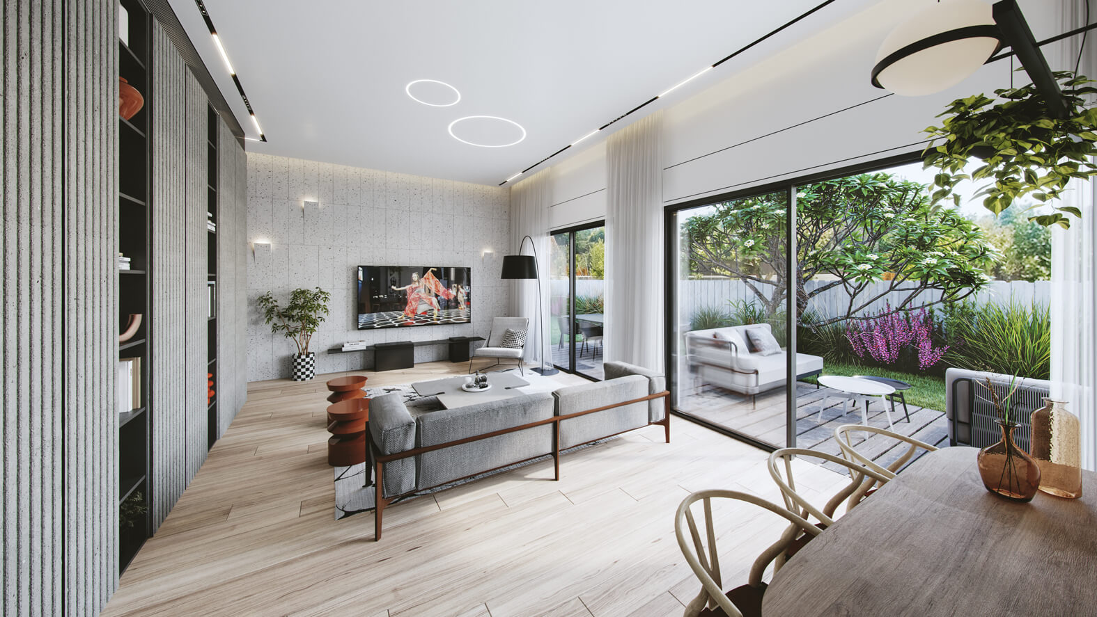ויטרינות גדולות לחלל המגורים למיקסום החשיפה לנוף ואור טבעי