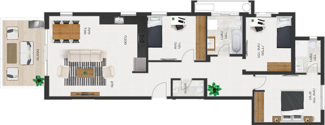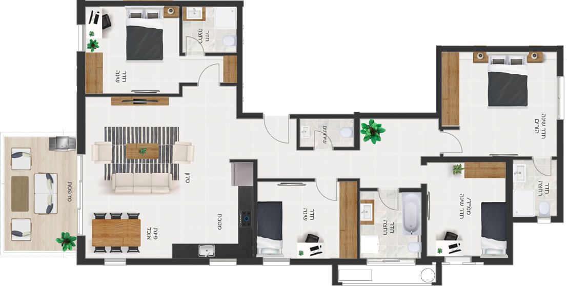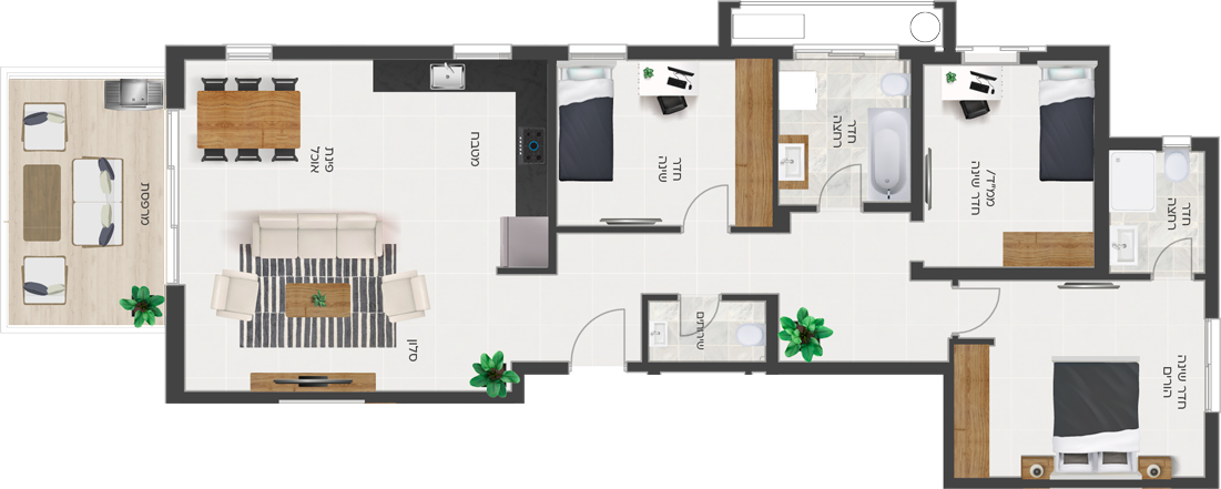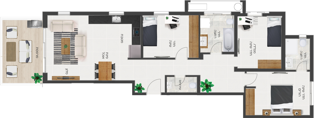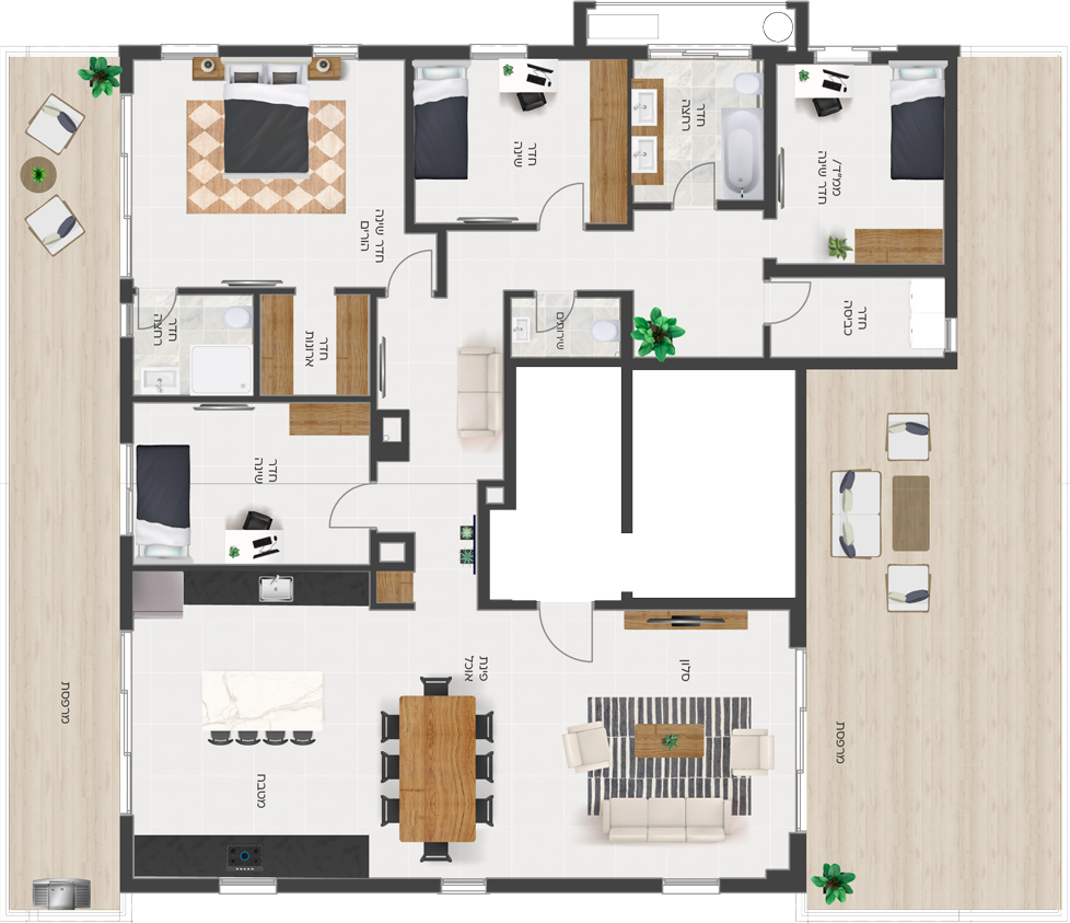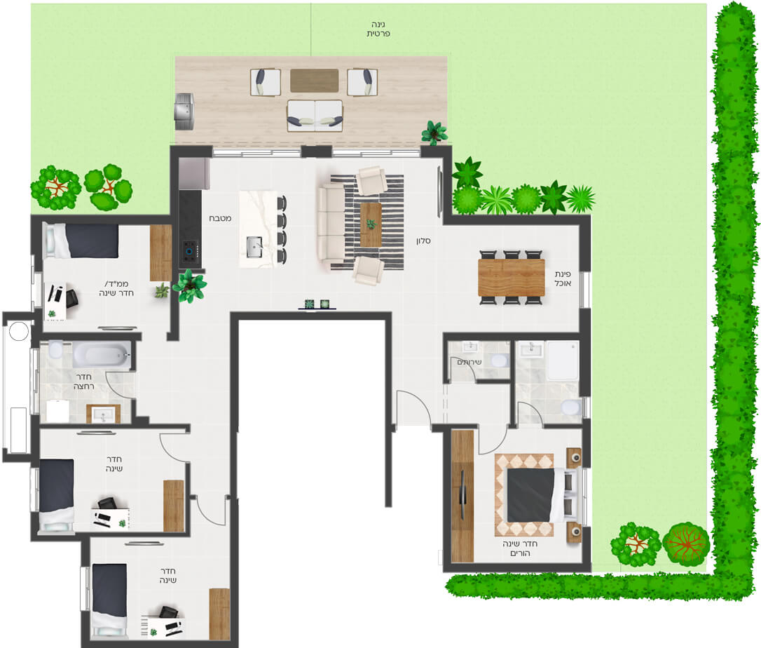 בגרניט פורצלן 100/100 או 120/60 למעט חללים רטובים ומרפסות