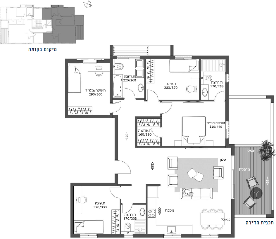 *הגדלת המרפסת לשטח של כ-20 מ״ר בכפוף לתהליך אישור העירייה והיתר שינויים.