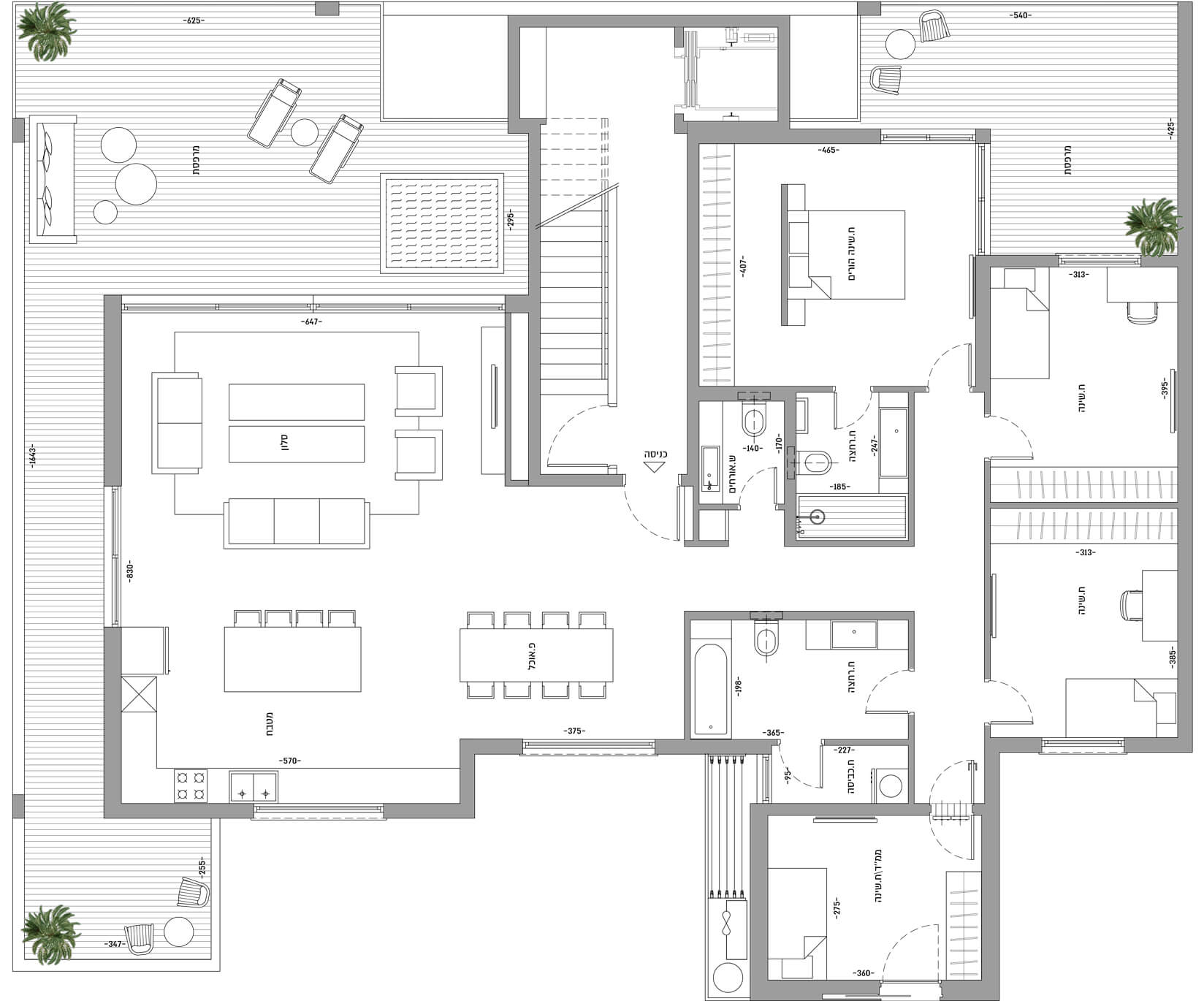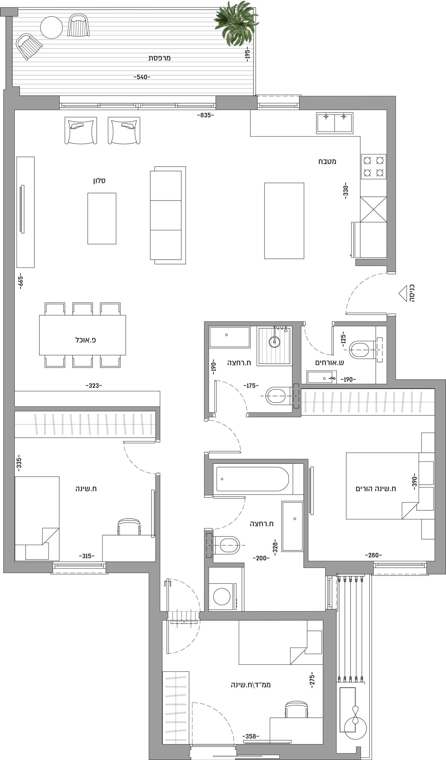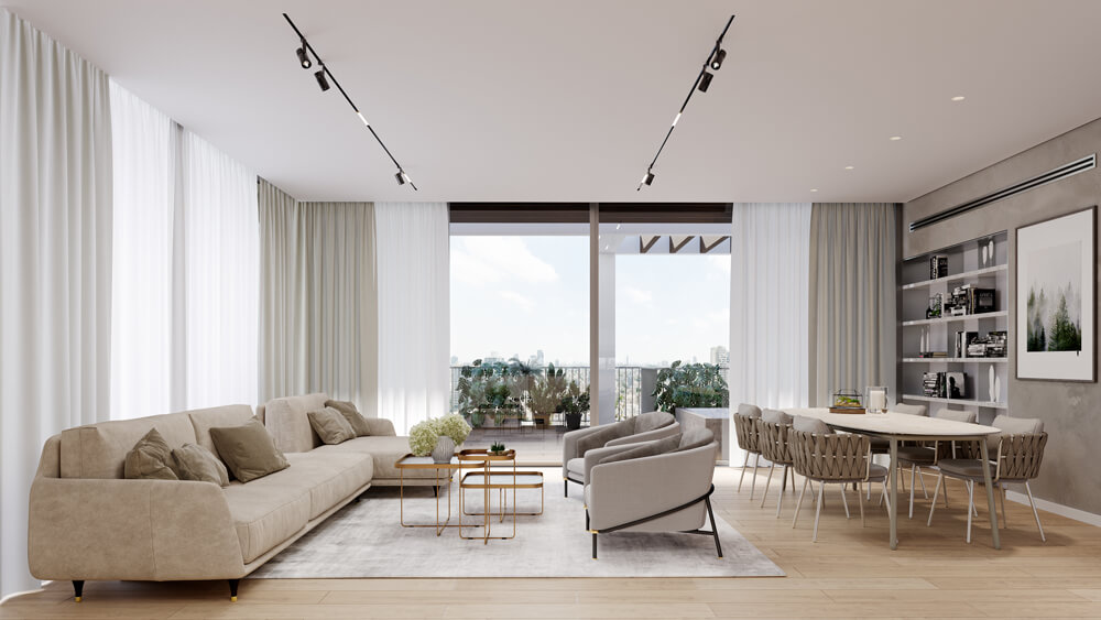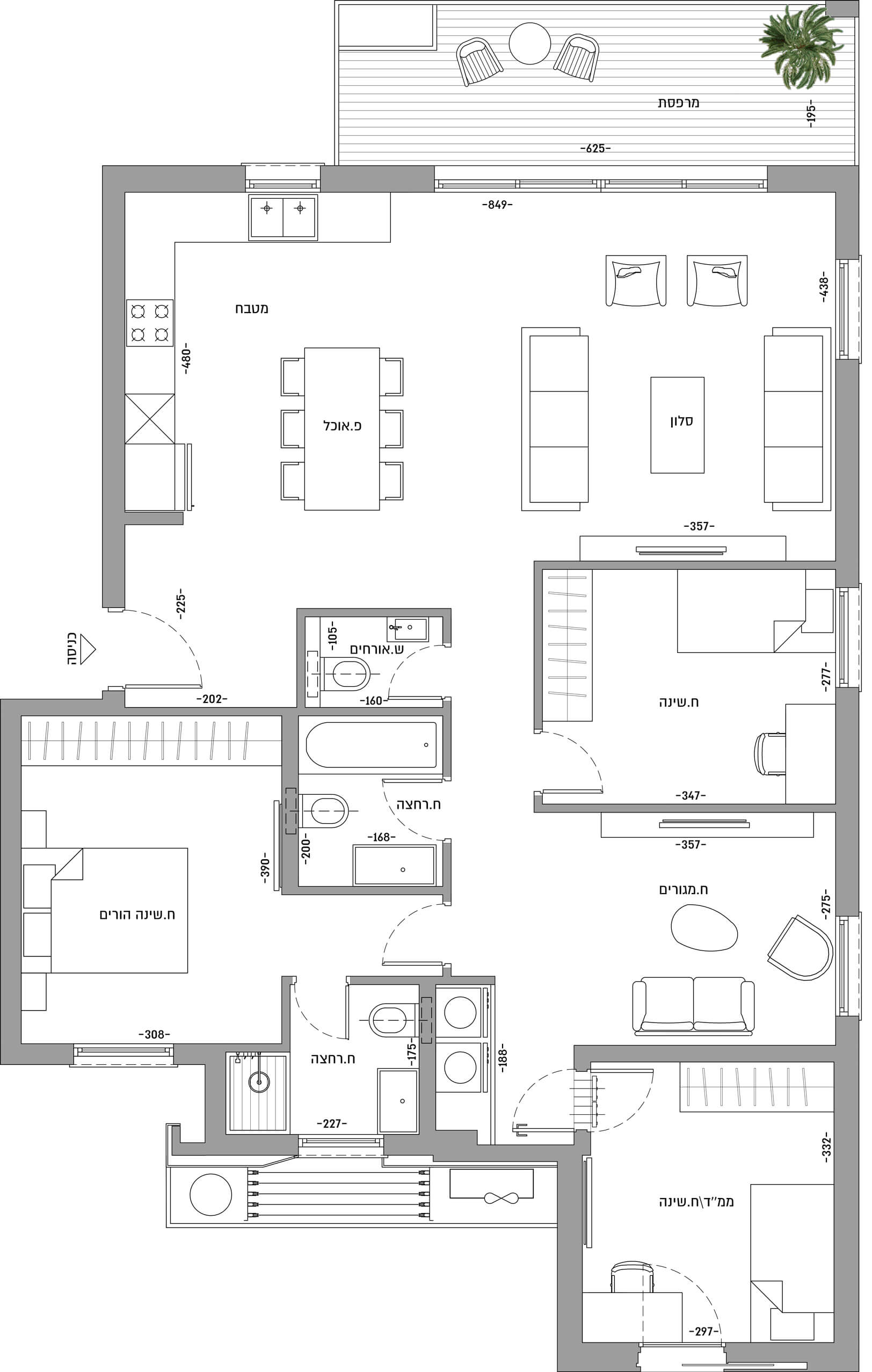 תריסי גלילה חשמליים בכל חדרי השינה (למעט ממ”ד) – במרפסת תריס הזזה מעוצב
