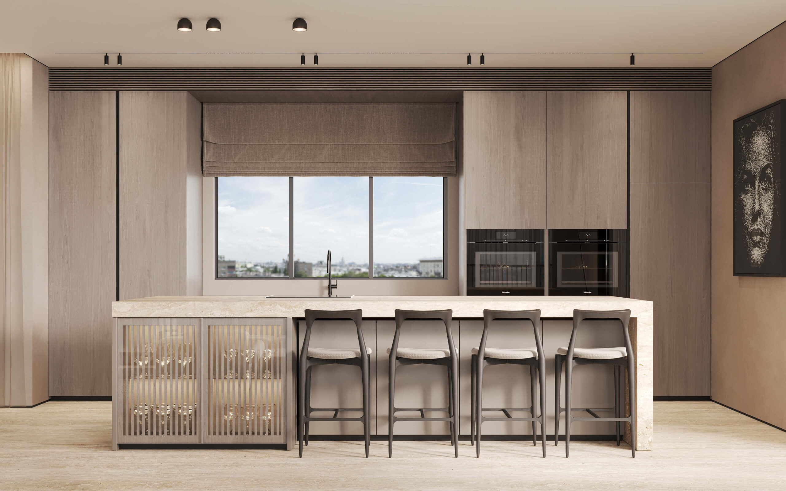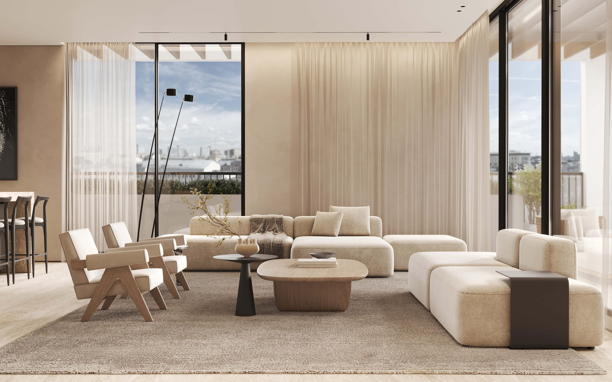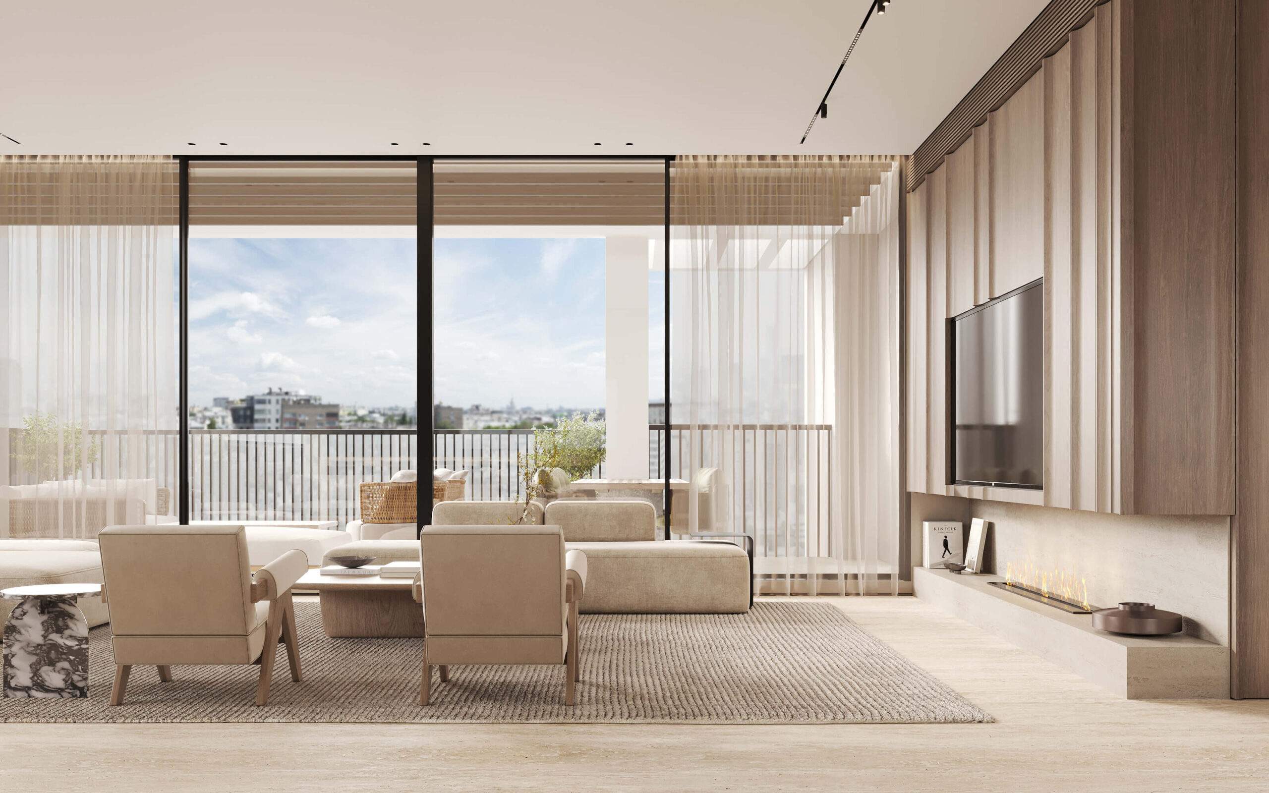 תריסי גלילה חשמליים בכל חדרי השינה (למעט ממ”ד) – במרפסת תריס הזזה מעוצב